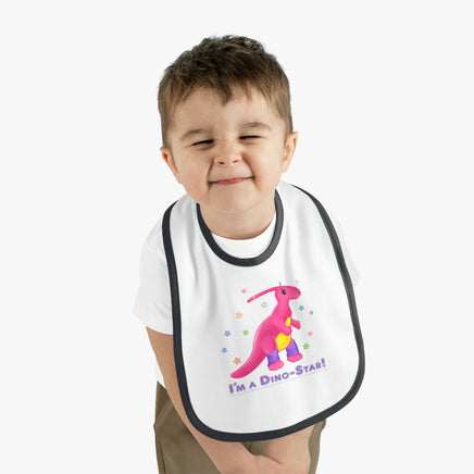 DINO-BUDDIES® - I'm a Dino-Star® with Jamie (Parasaurolophus) - Baby Contrast Trim Jersey Bib