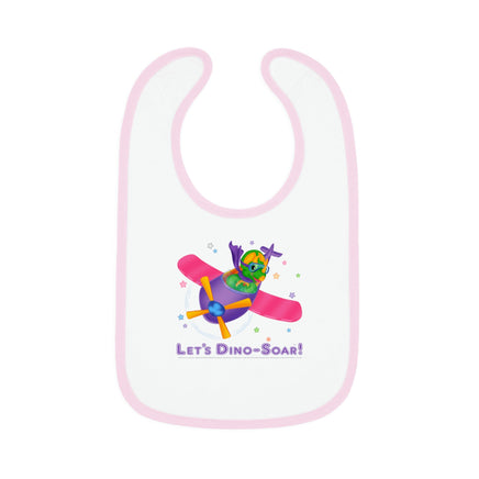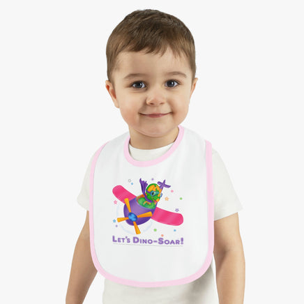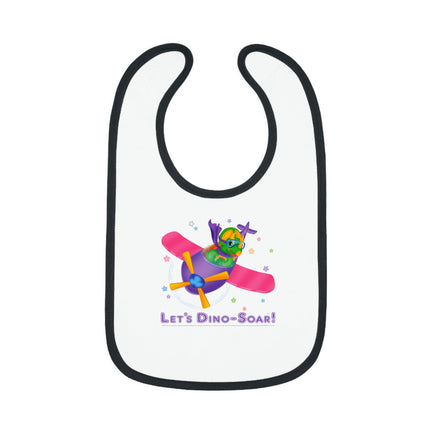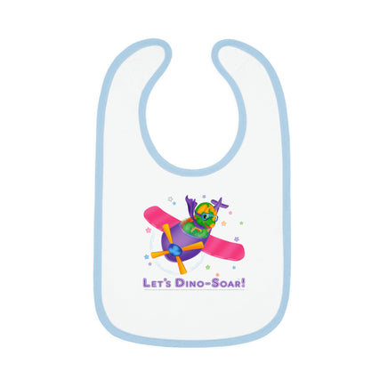 DINO-BUDDIES® - Let's Dino-Soar™ with Trey (Triceratops) in Airplane - Baby Contrast Trim Jersey Bib