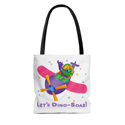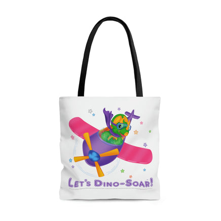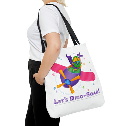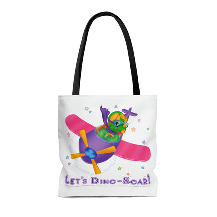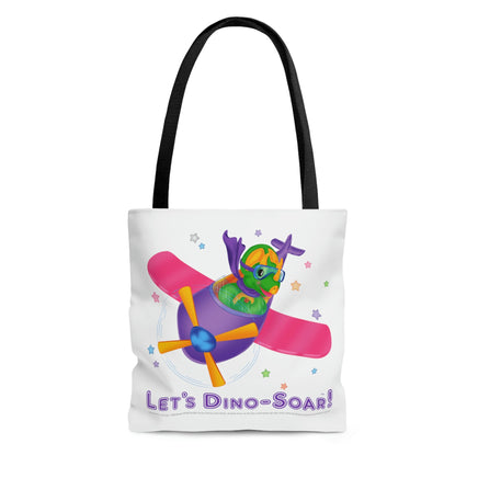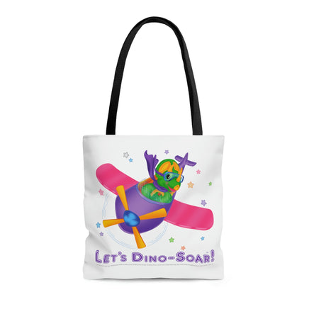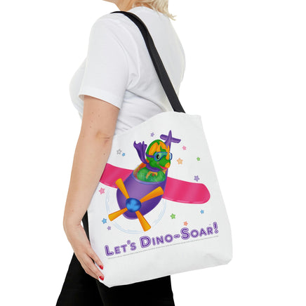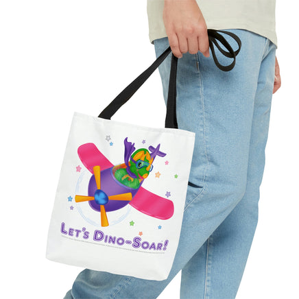 DINO-BUDDIES® - Let's Dino-Soar!™ with Trey (T-Rex Tyrannosaurus) in Airplane - Tote Bag (Gusseted)