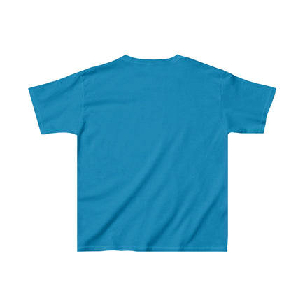 The kids heavy cotton tee is perfect for everyday use. The fabric is 100% cotton for solid colors. Polyester is included for heather-color variants. These fabrics are prime materials for printing. The shoulders have twill tape for improved durability. The collar is curl resistant due to ribbed knitting. There are no seams along the sides.